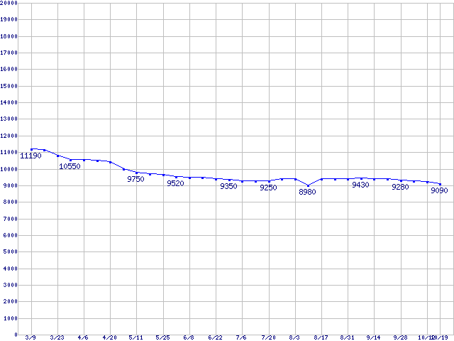 | MaXLine III (7200rpm,16MB,Ultra ATA/133,RoHS指令準拠)の最安値推移 | | | (2006年3月9日~2006年10月19日) |