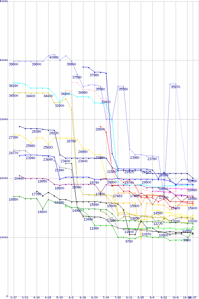 | CPU主要製品(最安値1万円~2万円未満)の最安値推移 | | | (2006年3月17日~2006年10月27日) |