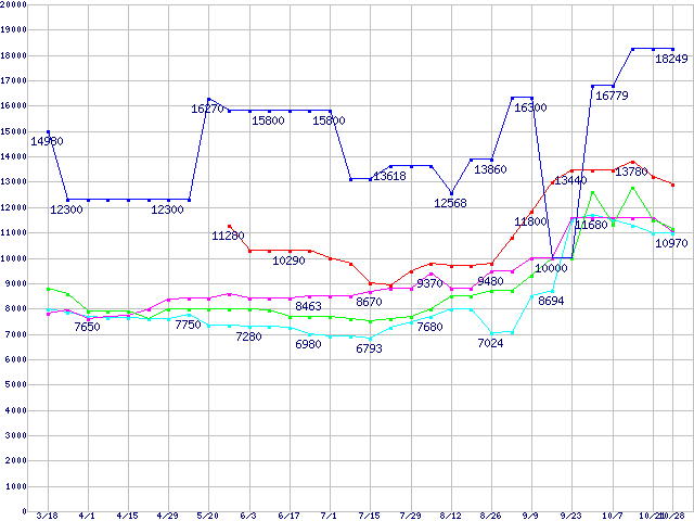 ※点線部は販売店が確認できなかった、または調査データがないことを示します