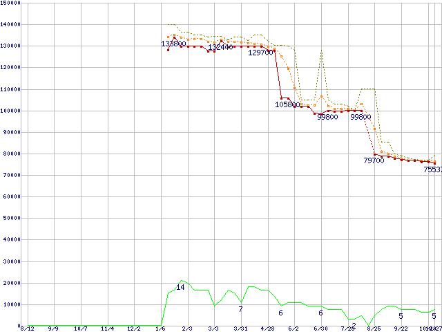 | Athlon 64 FX-60 (2.6GHz,L2 1MBx2)の価格推移 | | | (2005年8月12日~2006年10月27日) |