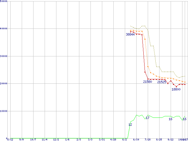 | Athlon 64 X2 3800+ (2.0GHz,L2 512KB×2,TDP65W)の価格推移 | | | (2005年8月12日~2006年10月27日) |