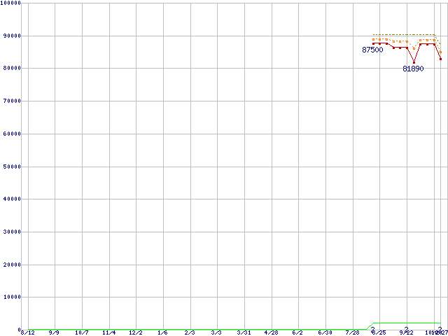 | Opteron 1216 (2.4GHz)の価格推移 | | | (2005年8月12日~2006年10月27日) |