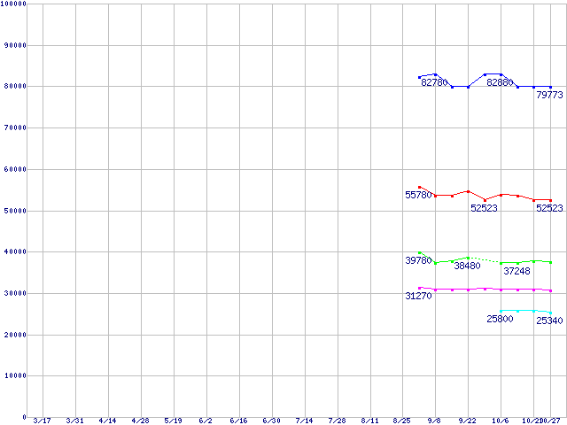 | Core Duo向けSocket 478 (FSB 667MHz,Dual Core,EM64T対応)の最安値推移 | | | (2006年3月17日~2006年10月27日) |