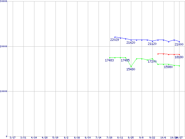 | LGA 775 (FSB 800MHz,L2 2MB×2,Dual Core,EM64T対応)の最安値推移 | | | (2006年3月17日~2006年10月27日) |