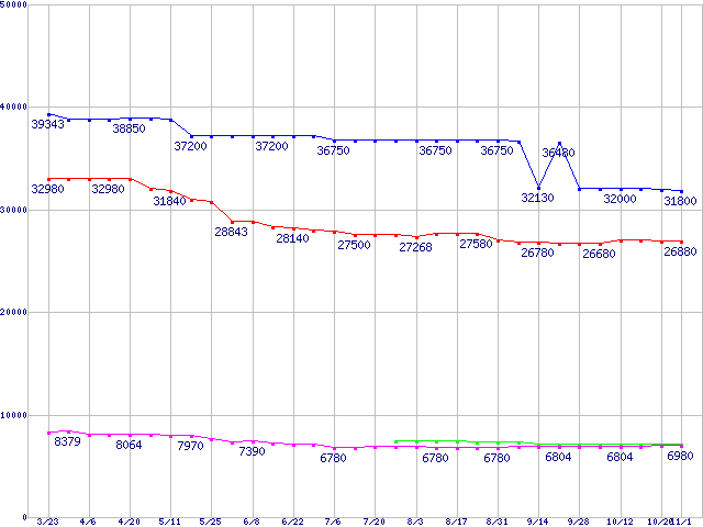 ※点線部は販売店が確認できなかった、または調査データがないことを示します