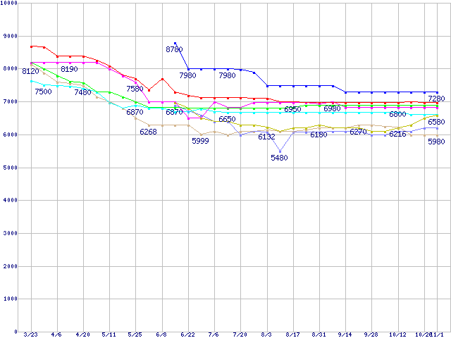 ※点線部は販売店が確認できなかった、または調査データがないことを示します