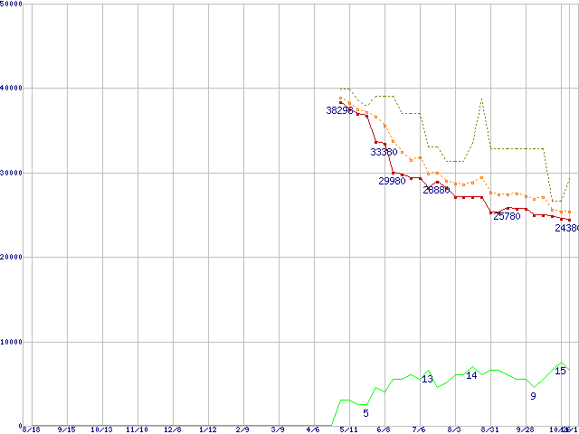 | ST3500630AS (500GB,16MB)の価格推移 | | | (2005年8月18日~2006年11月1日) |