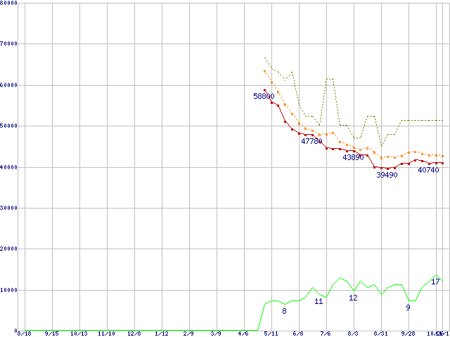 | ST3750640AS (750GB,16MB)の価格推移 | | | (2005年8月18日~2006年11月1日) |