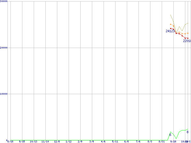 | HDT725050VLAT80 (500GB,8MB)の価格推移 | | | (2005年8月18日~2006年11月1日) |