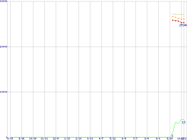 | Core 2 Duo T5500 (1.66GHz,L2 2MB)の価格推移 | | | (2005年8月19日~2006年11月2日) |