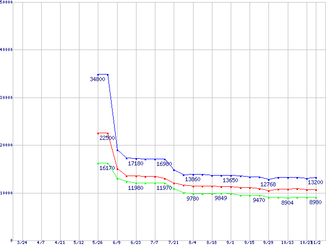 Socket AM2 (FSB 1000MHz)の最安値推移