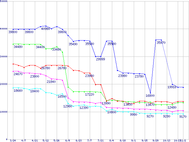 | Socket 939 (FSB 1000MHz)の最安値推移 | | | (2006年3月24日~2006年11月2日) |