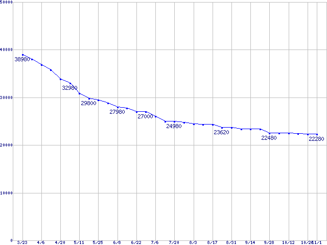 Deskstar 7K500 (7200rpm,Serial ATA II/3Gbps)の最安値推移