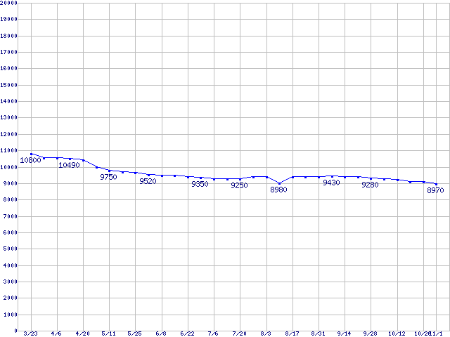 | MaXLine III (7200rpm,16MB,Ultra ATA/133,RoHS指令準拠)の最安値推移 | | | (2006年3月23日~2006年11月1日) |
