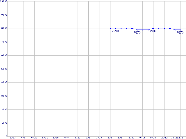 | SpinPoint (7200rpm,Ultra ATA/133,8MB)の最安値推移 | | | (2006年3月23日~2006年11月1日) |