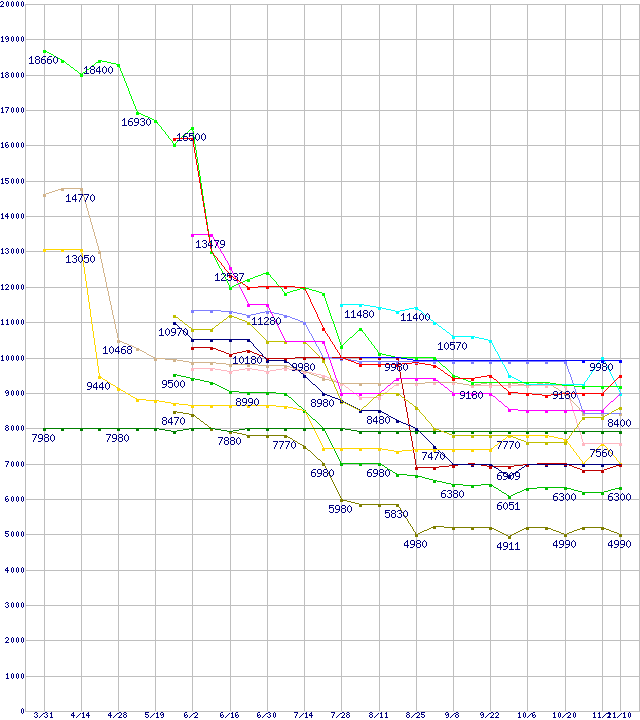 | CPU主要製品(最安値1万円未満)の最安値推移 | | | (2006年3月31日~2006年11月10日) |