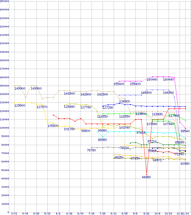 CPU主要製品(最安値3万円~6万円未満)の最安値推移