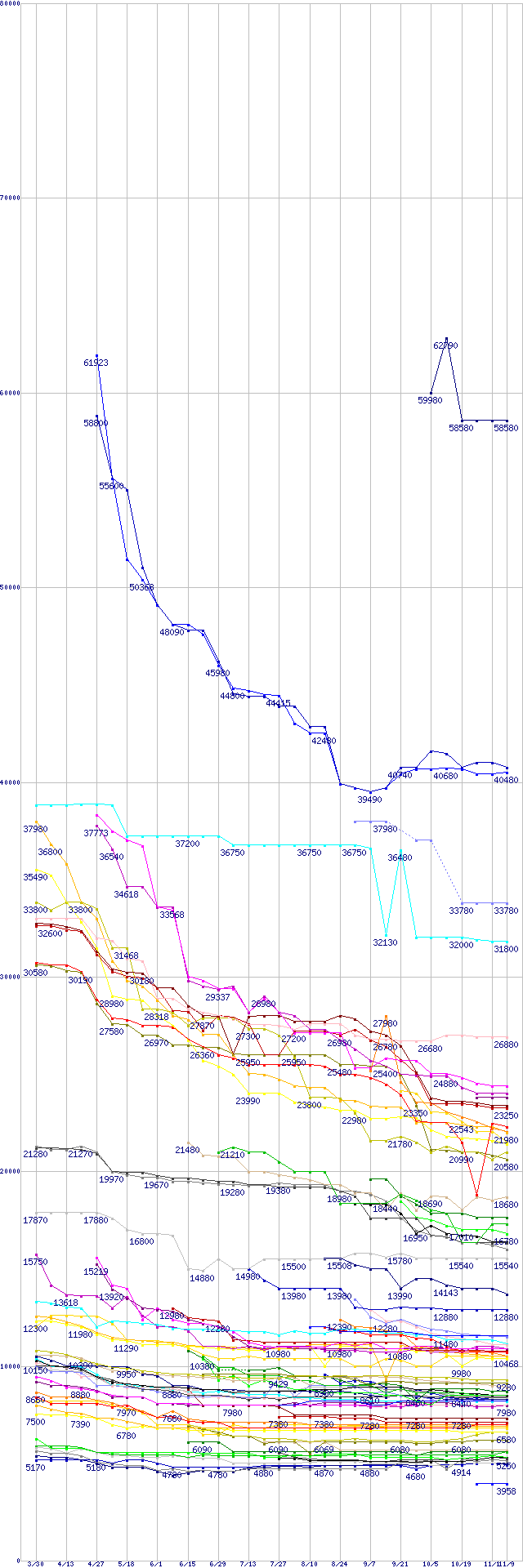 | HDD主要製品の最安値推移 | | | (2006年3月30日~2006年11月9日) |
