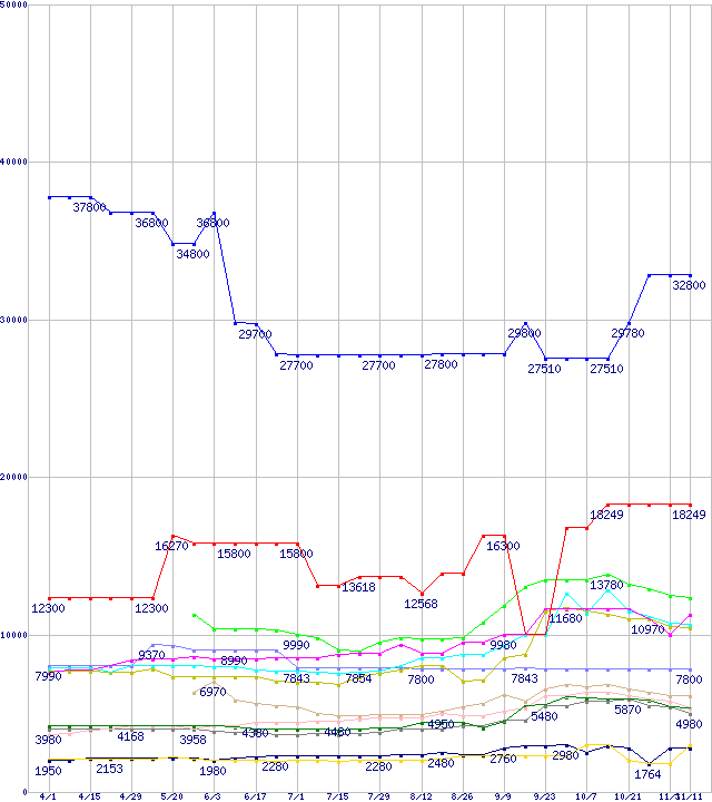 メモリ主要製品の最安値推移