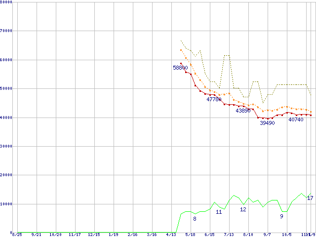 | ST3750640AS (750GB,16MB)の価格推移 | | | (2005年8月25日~2006年11月9日) |