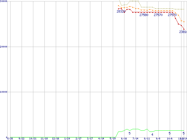 | Turion 64 X2 TL-52 (1.6GHz,512KB×2)の価格推移 | | | (2005年8月26日~2006年11月10日) |
