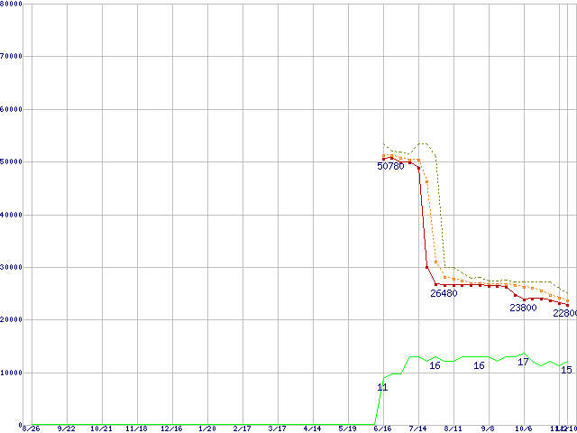 | Athlon 64 X2 4200+ (2.2GHz,L2 512KB×2,TDP65W)の価格推移 | | | (2005年8月26日~2006年11月10日) |