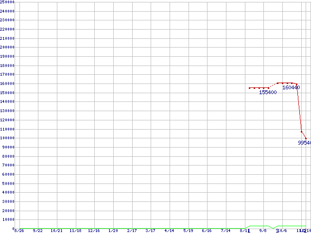 | Opteron 2220SE (2.8GHz) バルクの価格推移 | | | (2005年8月26日~2006年11月10日) |