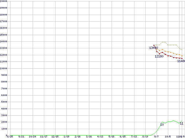 | 7V320F0 (320GB)の価格推移 | | | (2005年8月25日~2006年11月9日) |