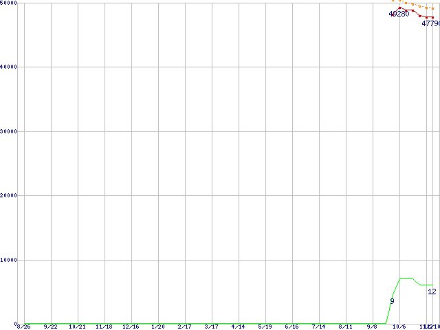 | Athlon 64 X2 5200+ (2.6GHz,L2 1MB×2) バルクの価格推移 | | | (2005年8月26日~2006年11月10日) |
