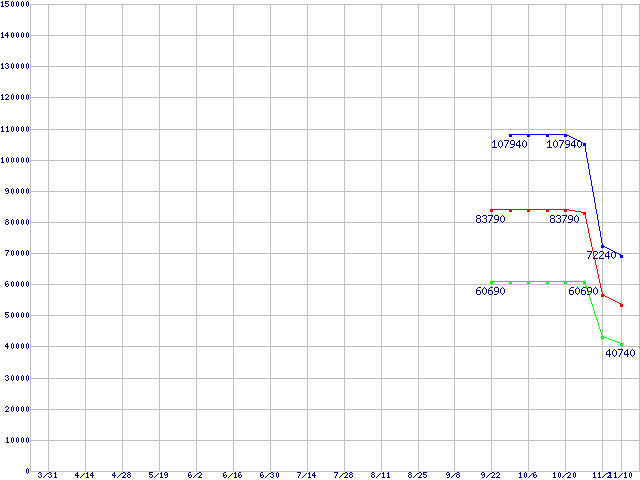 | Socket F (FSB 1000MHz,L2 1MBx2,Dual Core,TDP 68W)の最安値推移 | | | (2006年3月31日~2006年11月10日) |