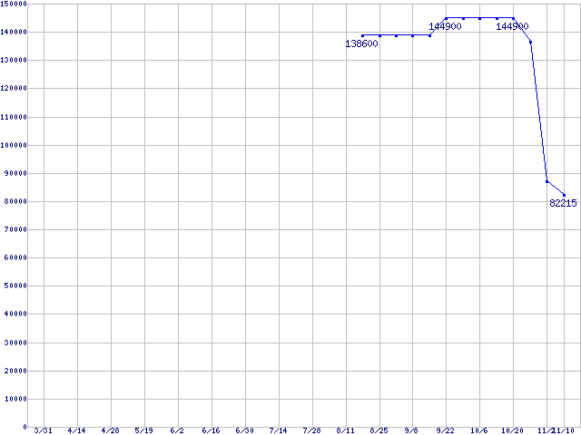 | Socket AM2 (FSB 1000MHz,L2 1MBx2,Dual Core,TDP 125W)の最安値推移 | | | (2006年3月31日~2006年11月10日) |
