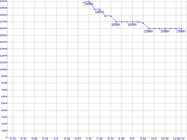 | Socket 478 (FC-PGA2,FSB 800MHz,L2 512KB,Hyper-Threading,Northwood)の最安値推移 | | | (2006年3月31日~2006年11月10日) |