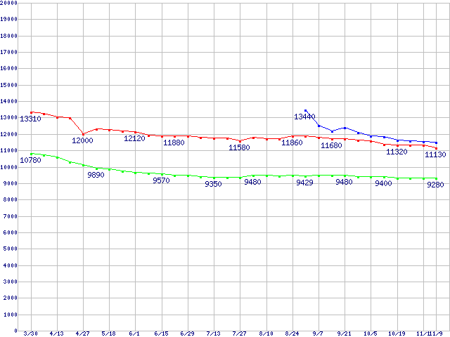 | MaXLine III (7200rpm,16MB,Serial ATA II,3Gbps)の最安値推移 | | | (2006年3月30日~2006年11月9日) |