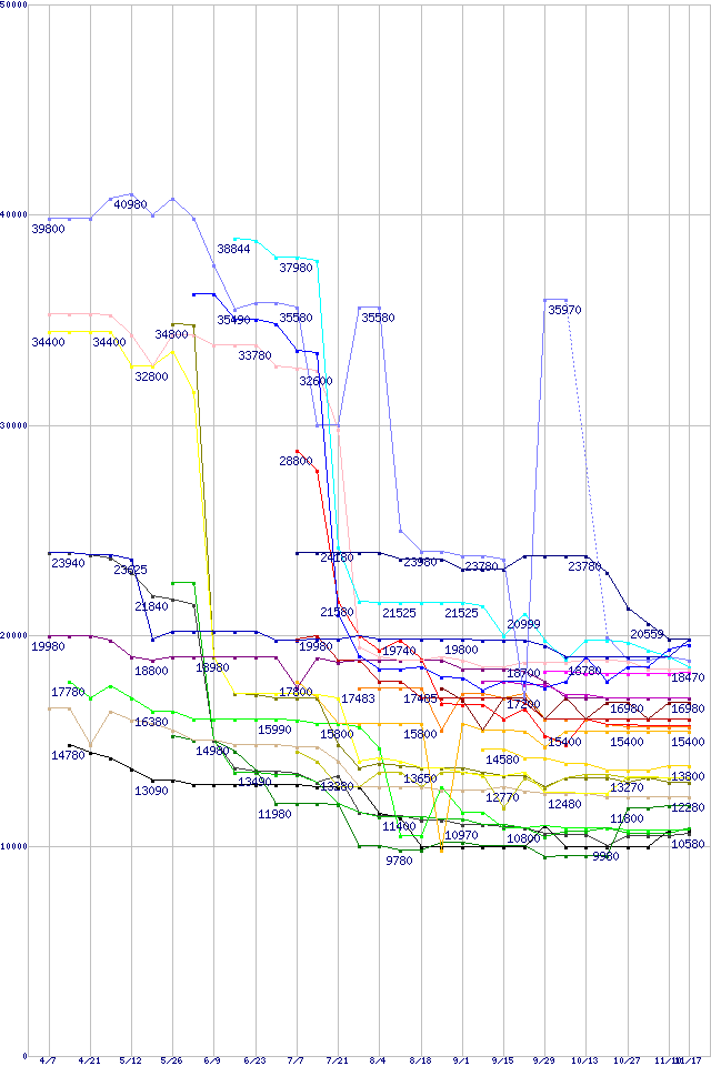※製品名をクリックすると個別のグラフを表示します ※点線部は販売店が確認できなかった、または調査データがないことを示します |
