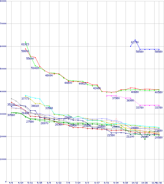 | HDD 500GB以上の最安値推移 | | | (2006年4月6日~2006年11月16日) |