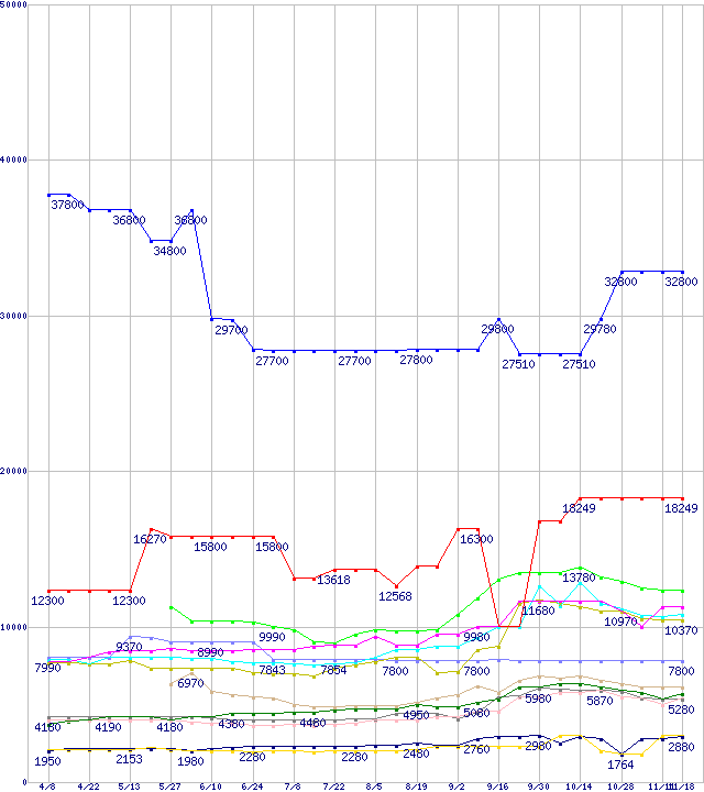 メモリ主要製品の最安値推移