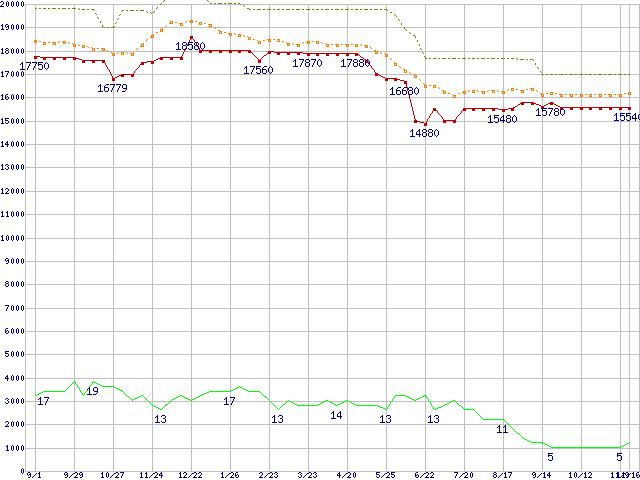 | WD740GD (74.3GB)の価格推移 | | | (2005年9月1日~2006年11月16日) |