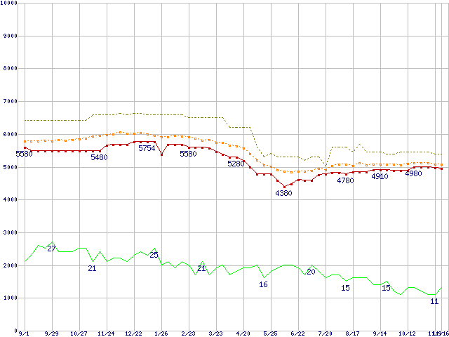 | HDS728080PLAT20 (80GB,2MB)の価格推移 | | | (2005年9月1日~2006年11月16日) |