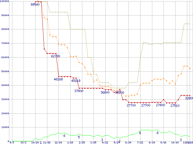 | PC2-4200* 2GBの価格推移 | | | (2005年9月3日~2006年11月18日) |
