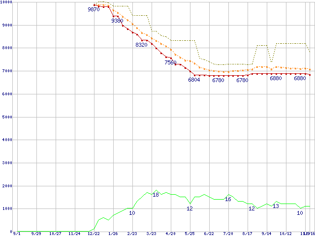 | 6V160E0 (160GB,8MB)の価格推移 | | | (2005年9月1日~2006年11月16日) |