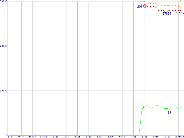 | Core 2 Duo E6400 (2.13GHz,L2 2MB)の価格推移 | | | (2005年9月2日~2006年11月17日) |