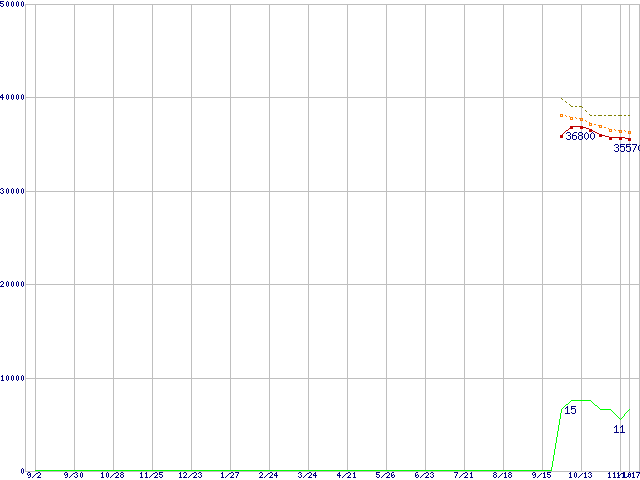 | Athlon 64 X2 5000+ (2.6GHz,L2 512KB×2) バルクの価格推移 | | | (2005年9月2日~2006年11月17日) |