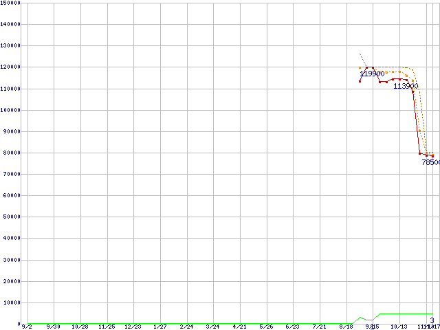 | Opteron 2218 (2.6GHz)の価格推移 | | | (2005年9月2日~2006年11月17日) |