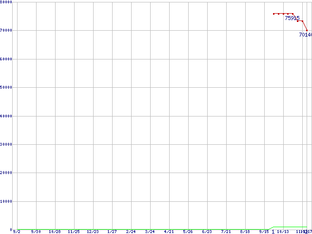 | Xeon 3070(2.66GHz L2 4MB)の価格推移 | | | (2005年9月2日~2006年11月17日) |