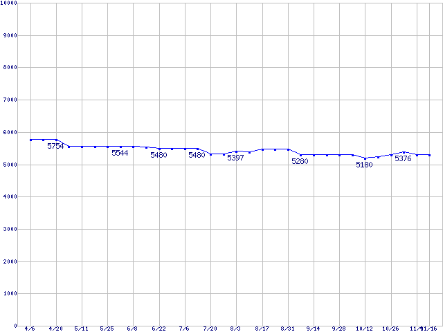 | Barracuda 7200.9 (7200rpm,Serial ATA II/3Gbps)の最安値推移 | | | (2006年4月6日~2006年11月16日) |