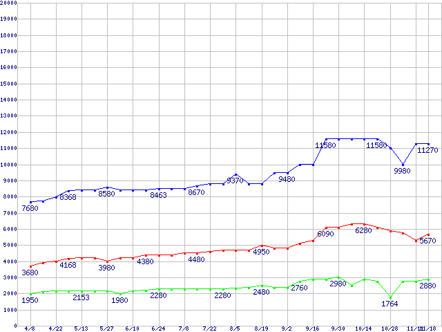 PC2-6400(DDR2-800) DDR2 SDRAM DIMMの最安値推移