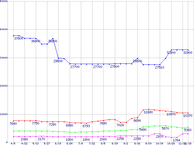 メモリ主要製品の最安値推移