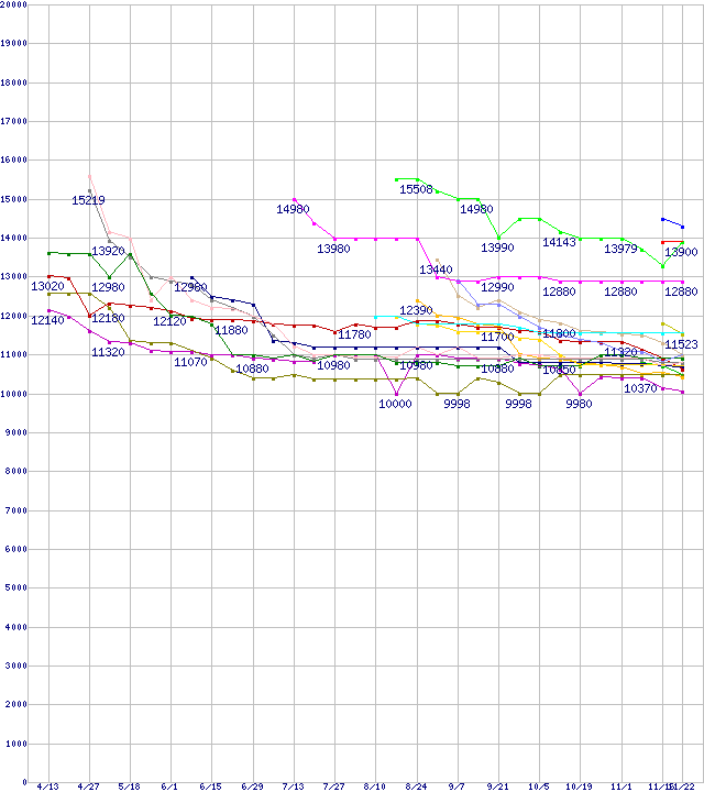 ※製品名をクリックすると個別のグラフを表示します ※点線部は販売店が確認できなかった、または調査データがないことを示します |