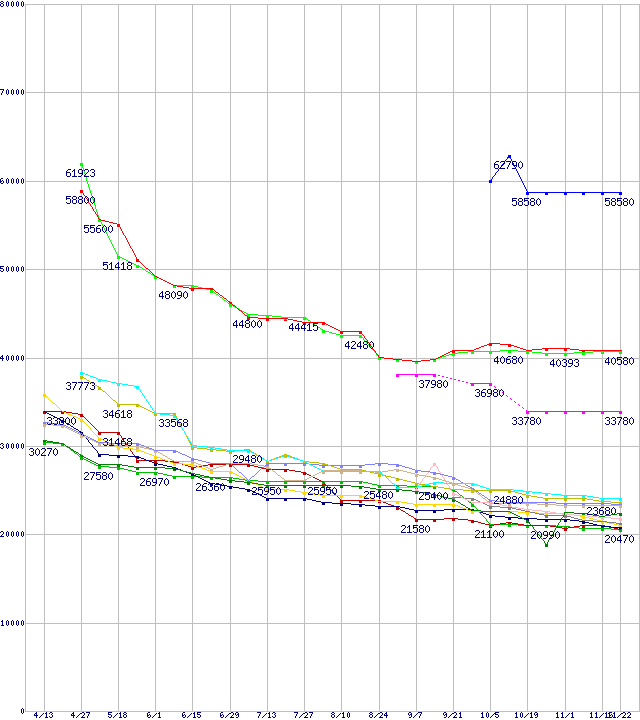 | HDD 500GB以上の最安値推移 | | | (2006年4月13日~2006年11月22日) |
