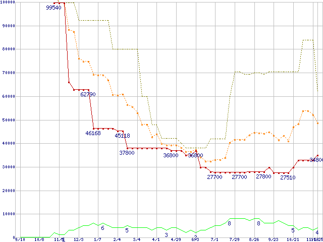 | PC2-4200* 2GBの価格推移 | | | (2005年9月10日~2006年11月25日) |